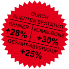 28%, Kombi-Artikel auf 30% und der gesamte Abverkauf steigt über 25%!